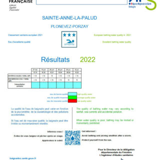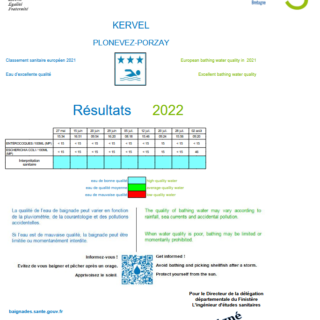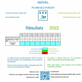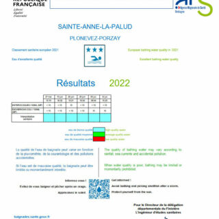 Qualité des eaux de baignade – plages de Kervel et de Sainte Anne la Palud : 18 juillet 2022. Cliquer ici